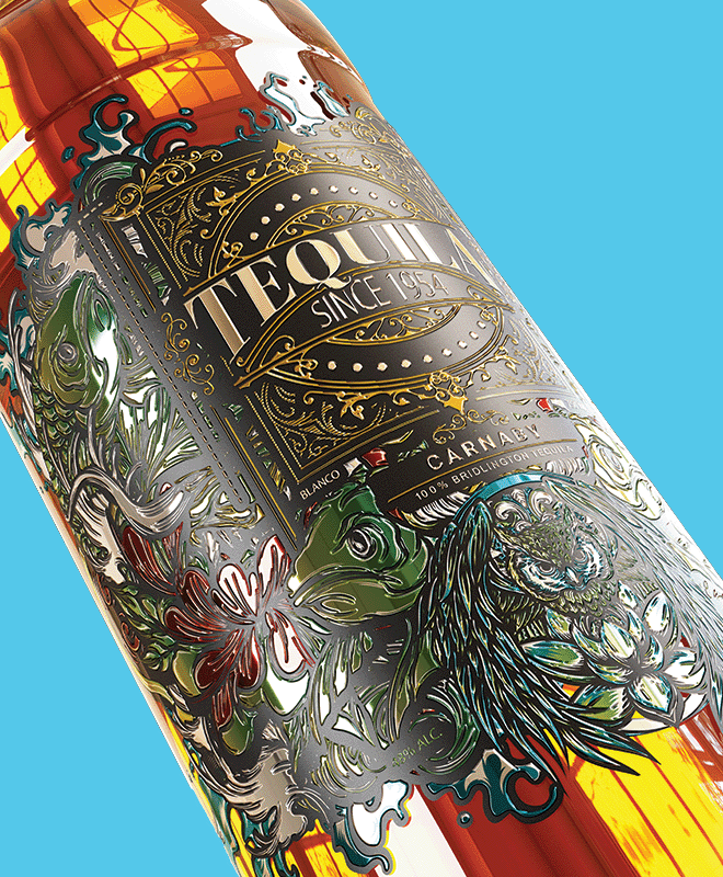 Rótulos de alto valor agregado: Verniz localizado, efeitos táteis e cold foil para diferenciação no ponto de venda.