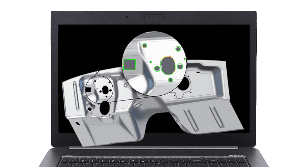 Visualize variações geométricas entre o modelo digitalizado e o arquivo CAD original por meio de heat maps intuitivos.