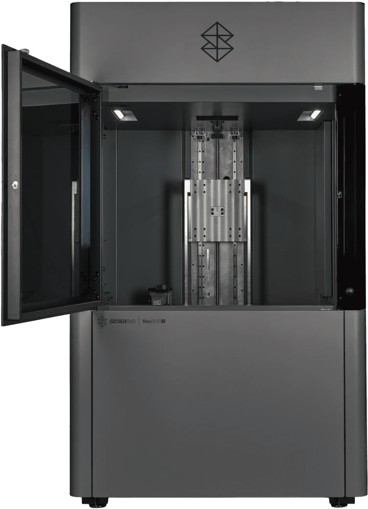 A Stratasys Neo800 é uma impressora 3D SLA de última geração, voltada para aplicações industriais que exigem grande volume, qualidade de superfície superior e alta repetibilidade. Com volume de construção de 800 × 800 × 600 mm, ela permite imprimir peças inteiras, reduzindo tempo e custo com montagem ou pós-processamento. Sua arquitetura aberta de resinas, combinada ao poderoso software Titanium, garante liberdade total para desenvolver aplicações específicas com controle total do processo.